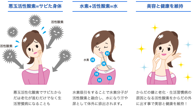 水素は活性酸素の害から身を守る抗酸化酵素(SOD)の代わりに働きます。
